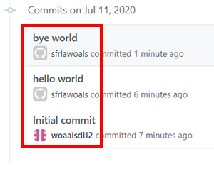 * 1인 2역으로 설명하다보니 전역으로 설정된 계정으로 hello world가 올라가버렸다..