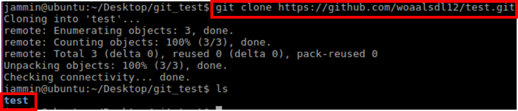 만약 정상적으로 동작한다면 Github에서 생성한 Repository이름으로 폴더가 생성될 것이다.