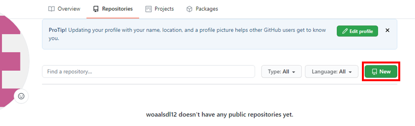 1. 개인 Repositary(저장소) 생성하기