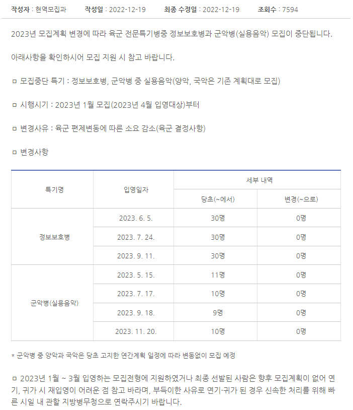 * 2022년 이후 육군 정보보호병 모집 일정이